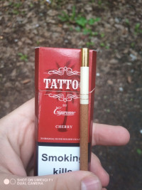 Сигареты Tattoo (вишня, Армения)<br /> Из самой пачки пахнет сладкой вишней <br /> При курение тут немного по другому,чем у демократа,вкус более табачный и средняя аромка все гормагично <br /> Набивка чуть выше среднего,фильтр мундштук и 4 кольца перфорации,но очень мелкие ,фильтр так же обладает фольгой чтоб меньше прилипало к губам)<br /> Крепость заявлена 0.8,не могу сказать что есть такая,но в голову немного бьёт <br /> Рекомендую к покупке приятные сигареты)Отзывы с оценкой